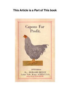 Recently one of our friends asked that I teach her to make capons, as chefs at high class restaurants have requested that she supply them with capons. This has renewed my interest in the subject, and I have read through my library of capon publications, and, also, downloaded several that have been digitized from other collections.